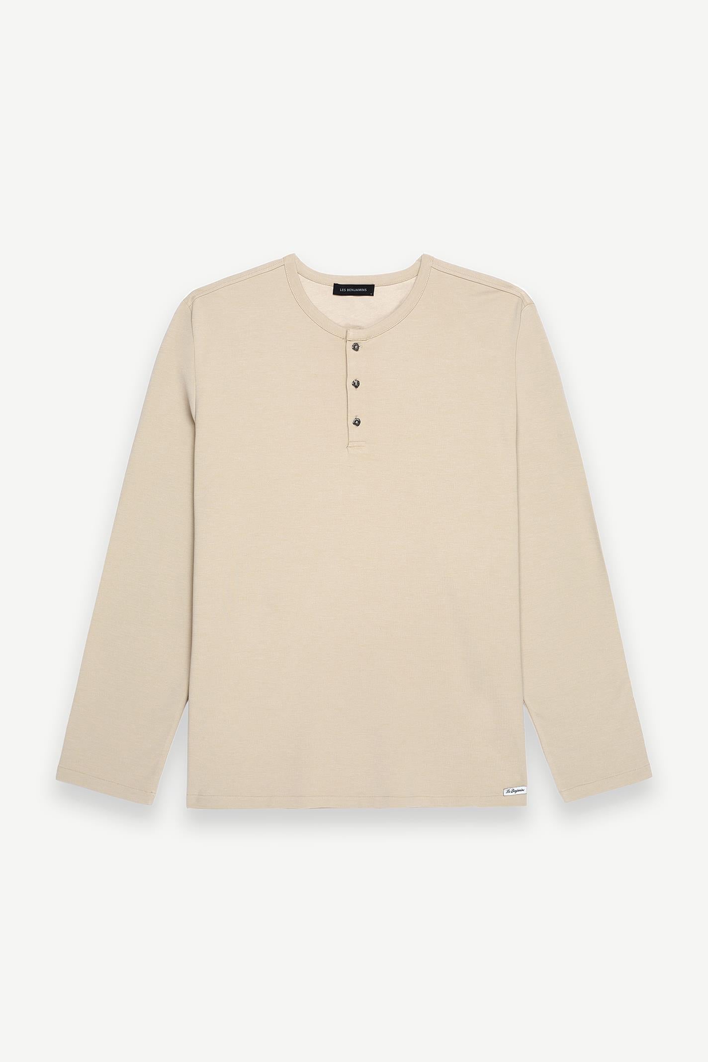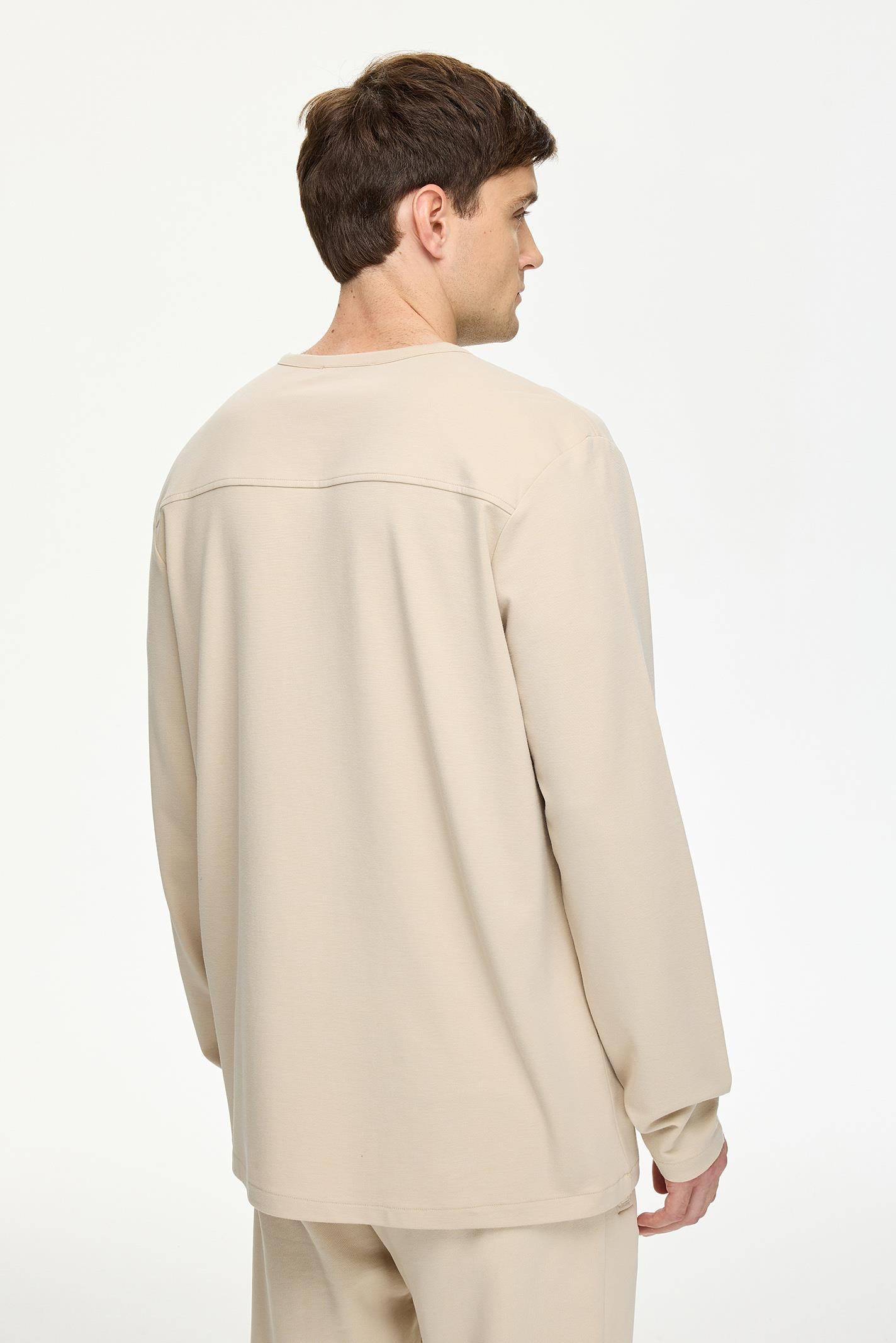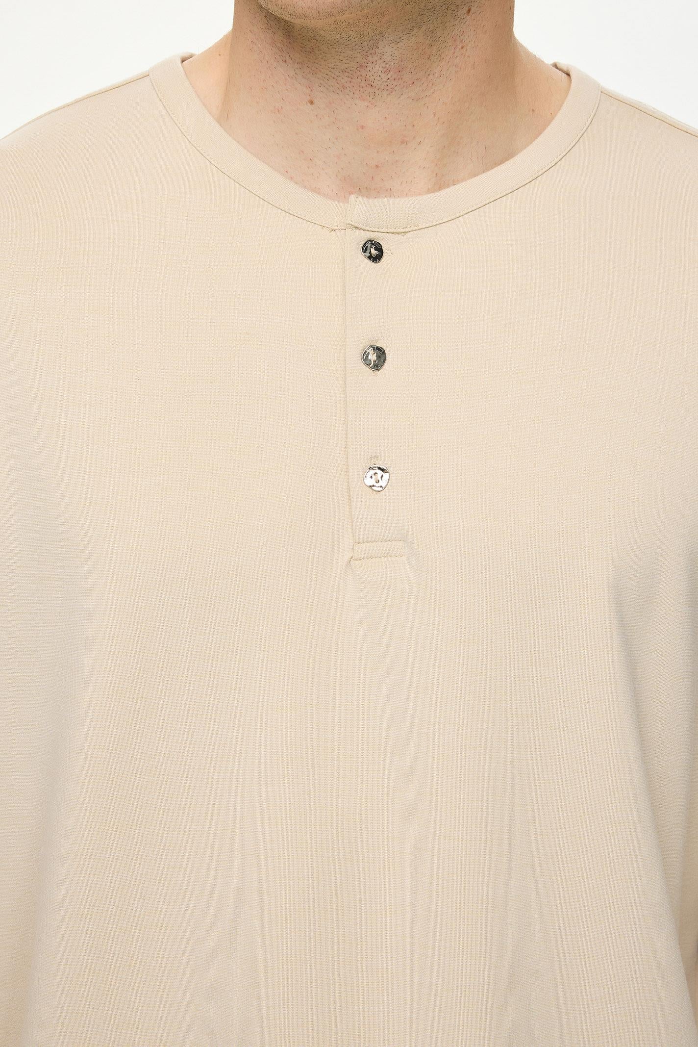 Regular Fit Bej Renkli Erkek Uzun Kollu Tişört