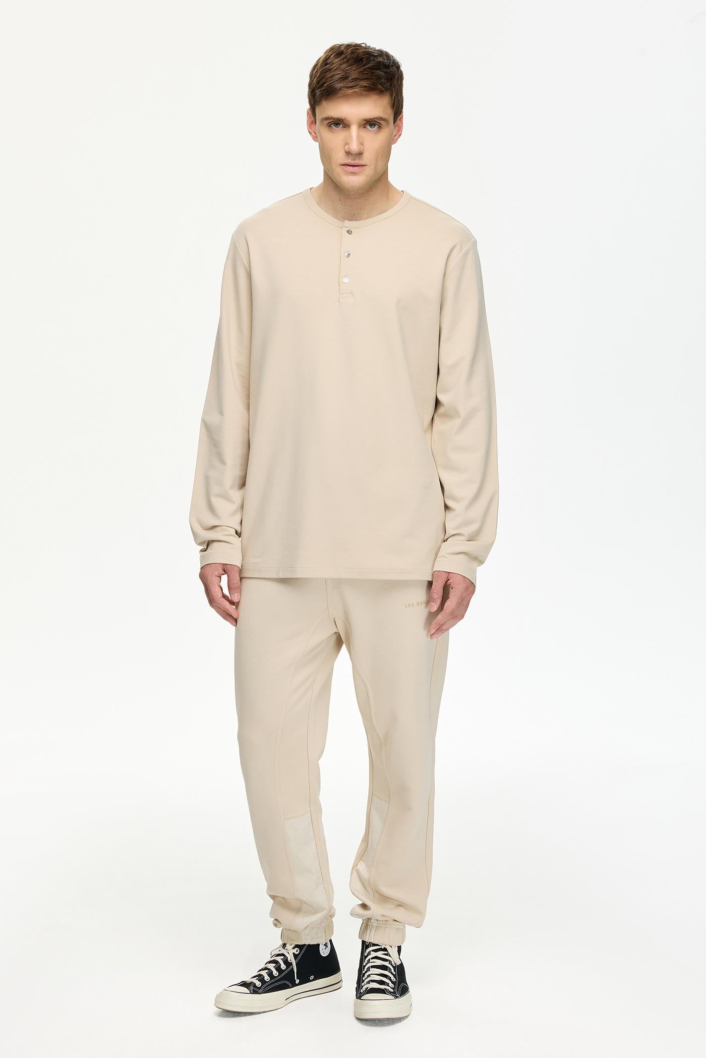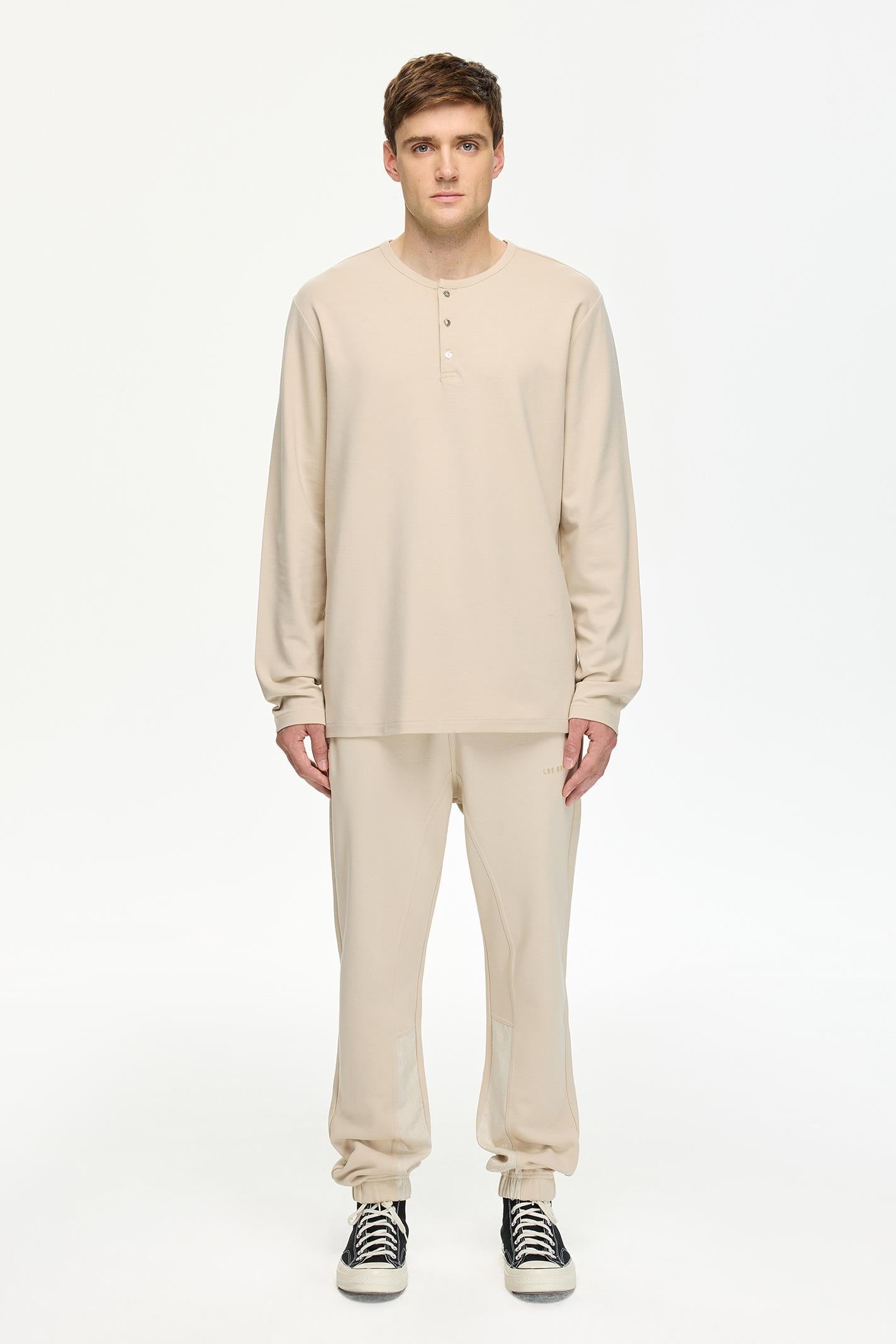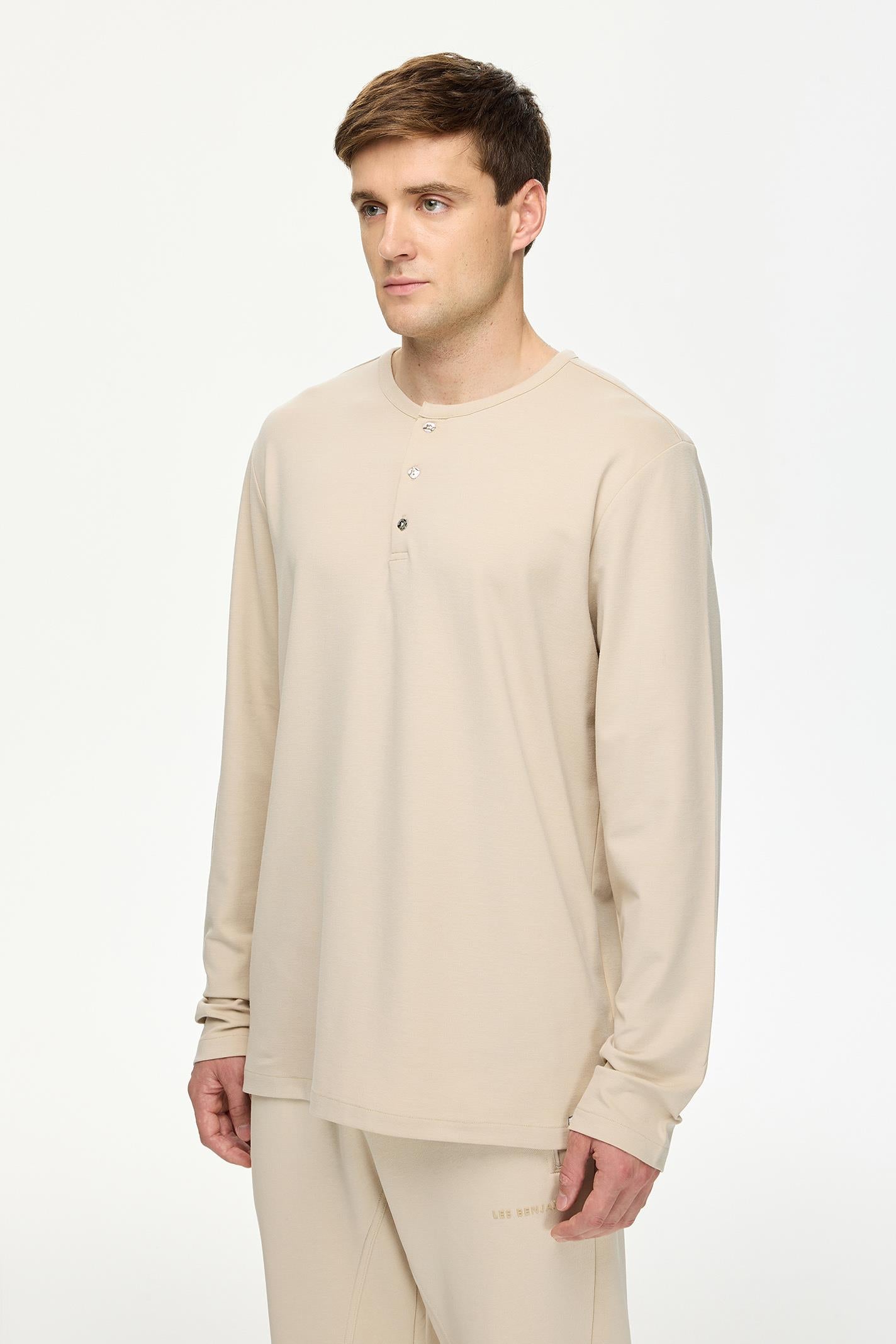 Regular Fit Bej Renkli Erkek Uzun Kollu Tişört