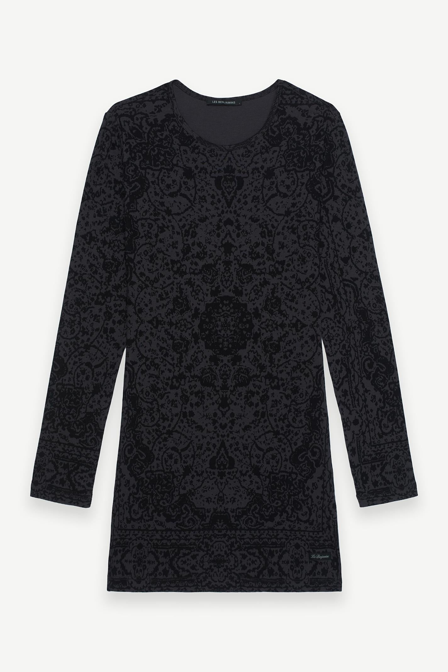 Siyah zemin üzerine detaylı desenlerle zenginleştirilmiş bu uzun kollu Les Benjamins sweatshirt, modern şehir hayatına kültürel dokunuşlar katıyor. Yumuşak dokulu jarse kumaşı, gün boyu konfor sağlarken, regular fit kesimi hareket özgürlüğü sunuyor. Göğüs kısmında minimal bir LES BENJAMINS logosu ile tamamlanan tasarım, zarif crew neck yaka ile sade ve güçlü bir duruş sergiliyor. Hem gündüz hem gece kullanımına uygun bu parça, streetwear estetiğini lüks bir tavırla buluşturuyor.