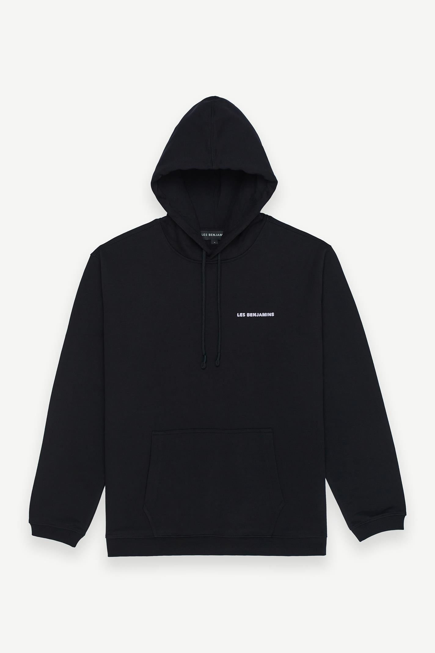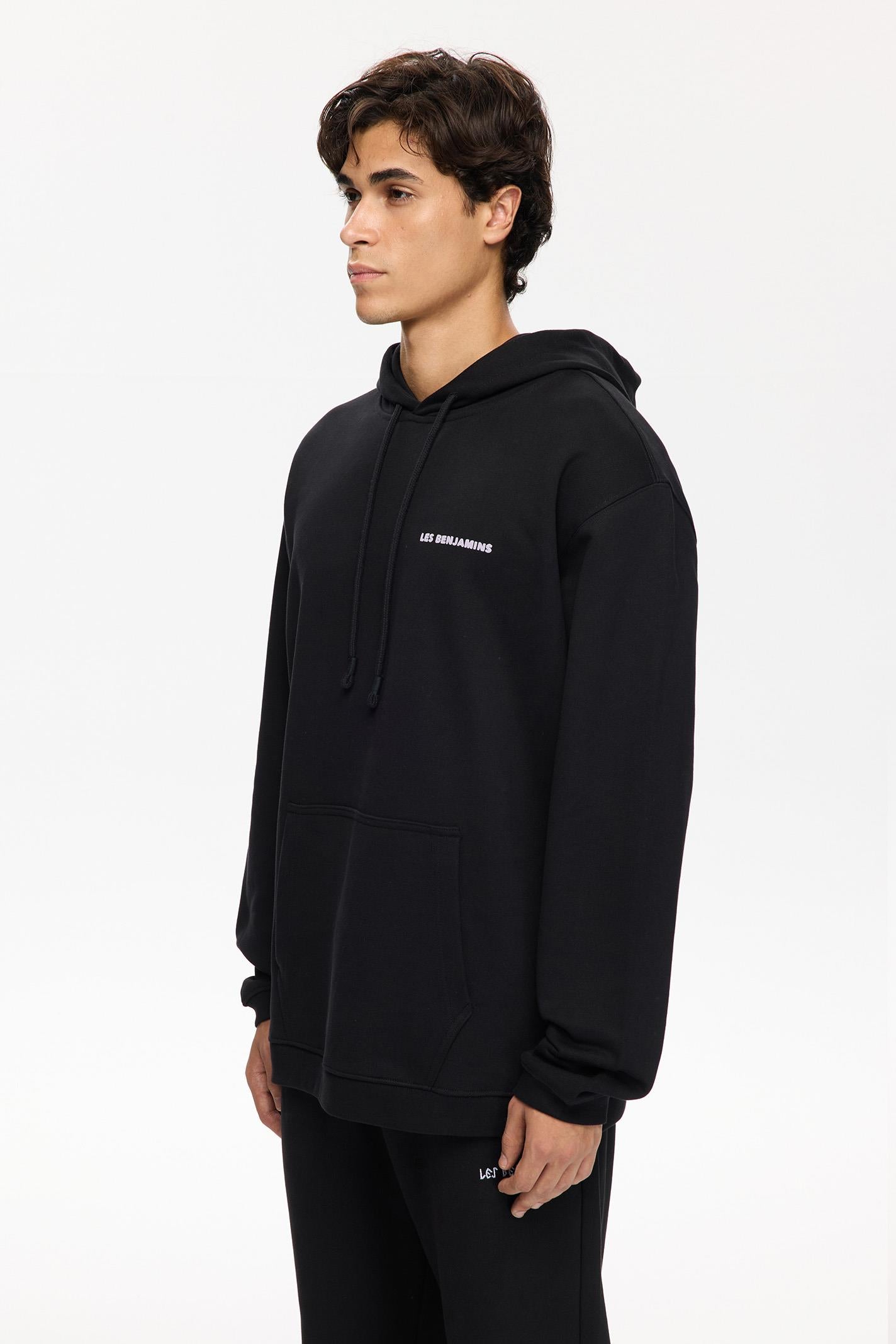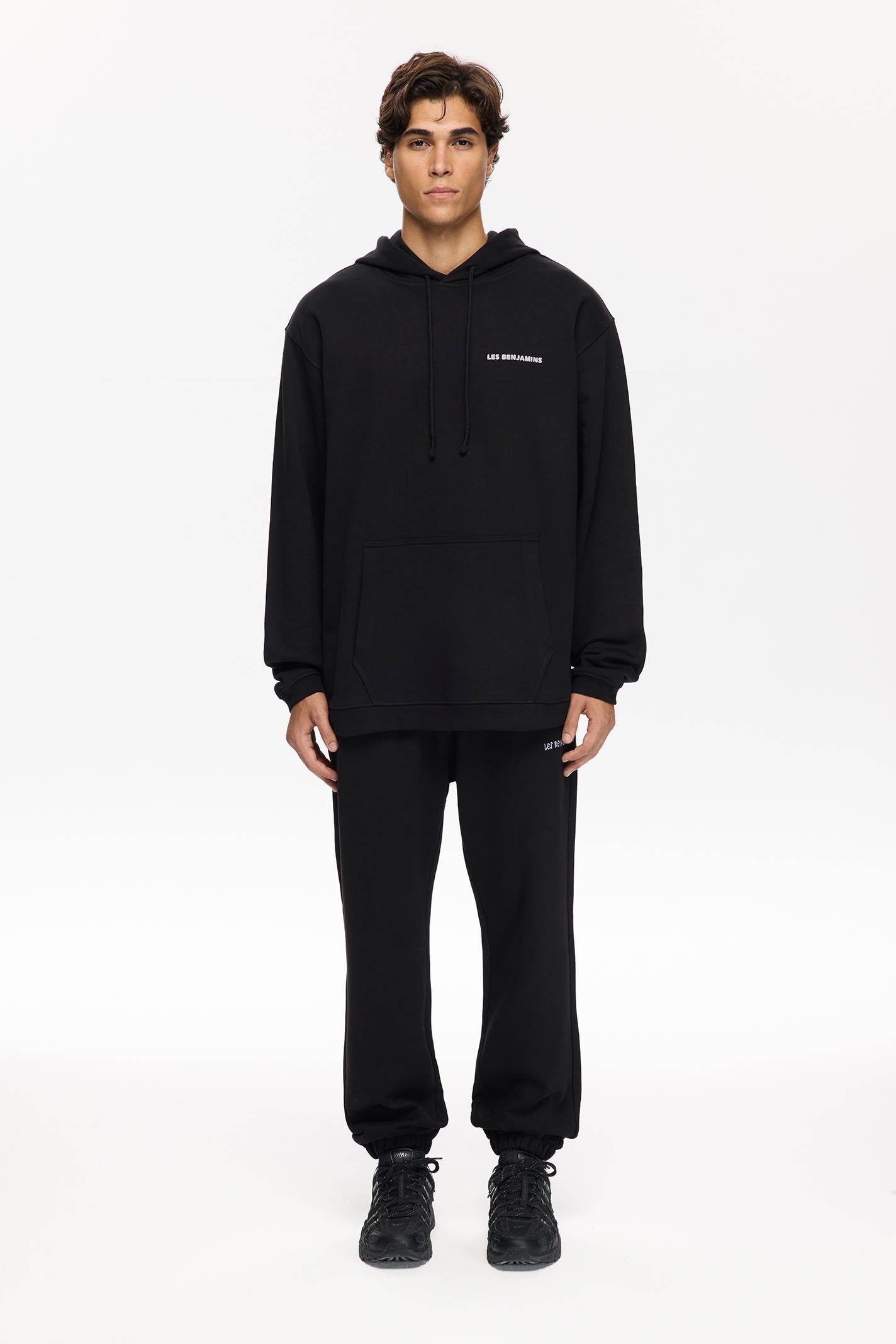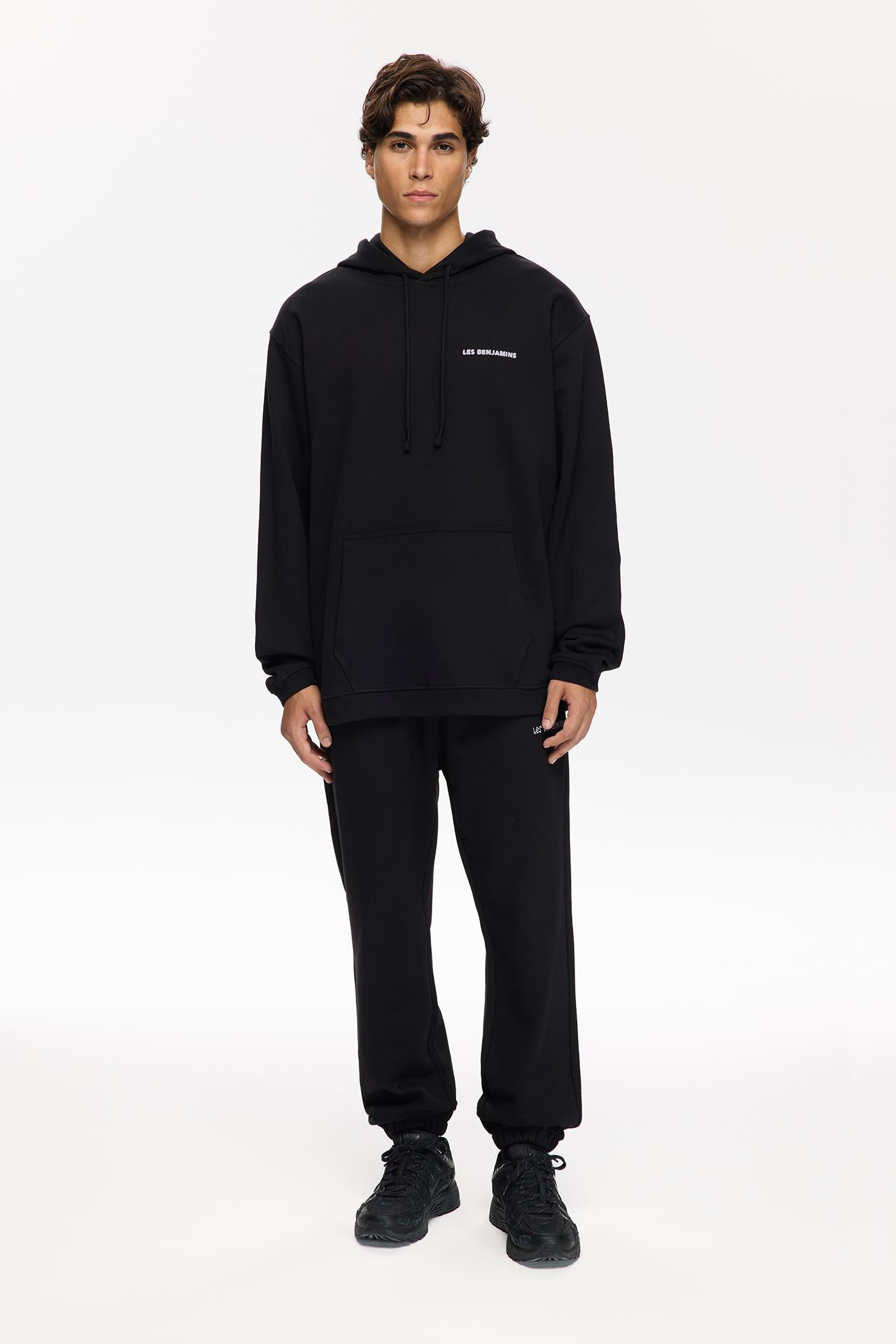 Minimalist tasarımıyla dikkat çeken bu siyah Les Benjamins hoodie, regular fit kesimi ve kapüşonlu yaka detaylarıyla modern şehir yaşamına uyum sağlıyor. Yumuşak jersey kumaşı, gün boyu konfor sunarken kanguru cebi pratik bir kullanım sağlıyor. Göğüs kısmında yer alan küçük boyutlu Les Benjamins logosu, tasarıma sofistike bir dokunuş katıyor. Uzun kollu yapısı hareket özgürlüğü sunarken, sade tasarımıyla hem gündüz hem gece stillerine uyum sağlıyor.
