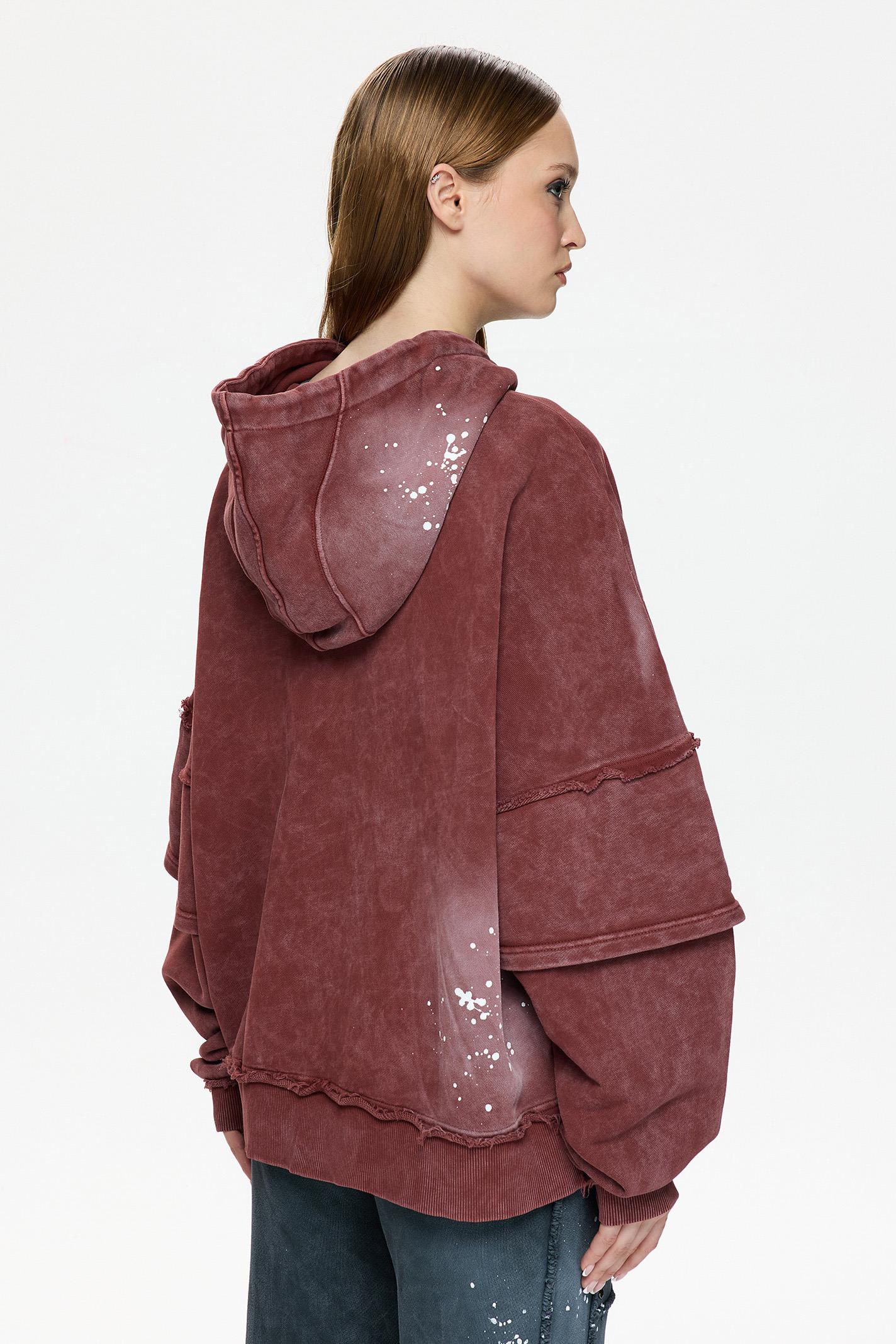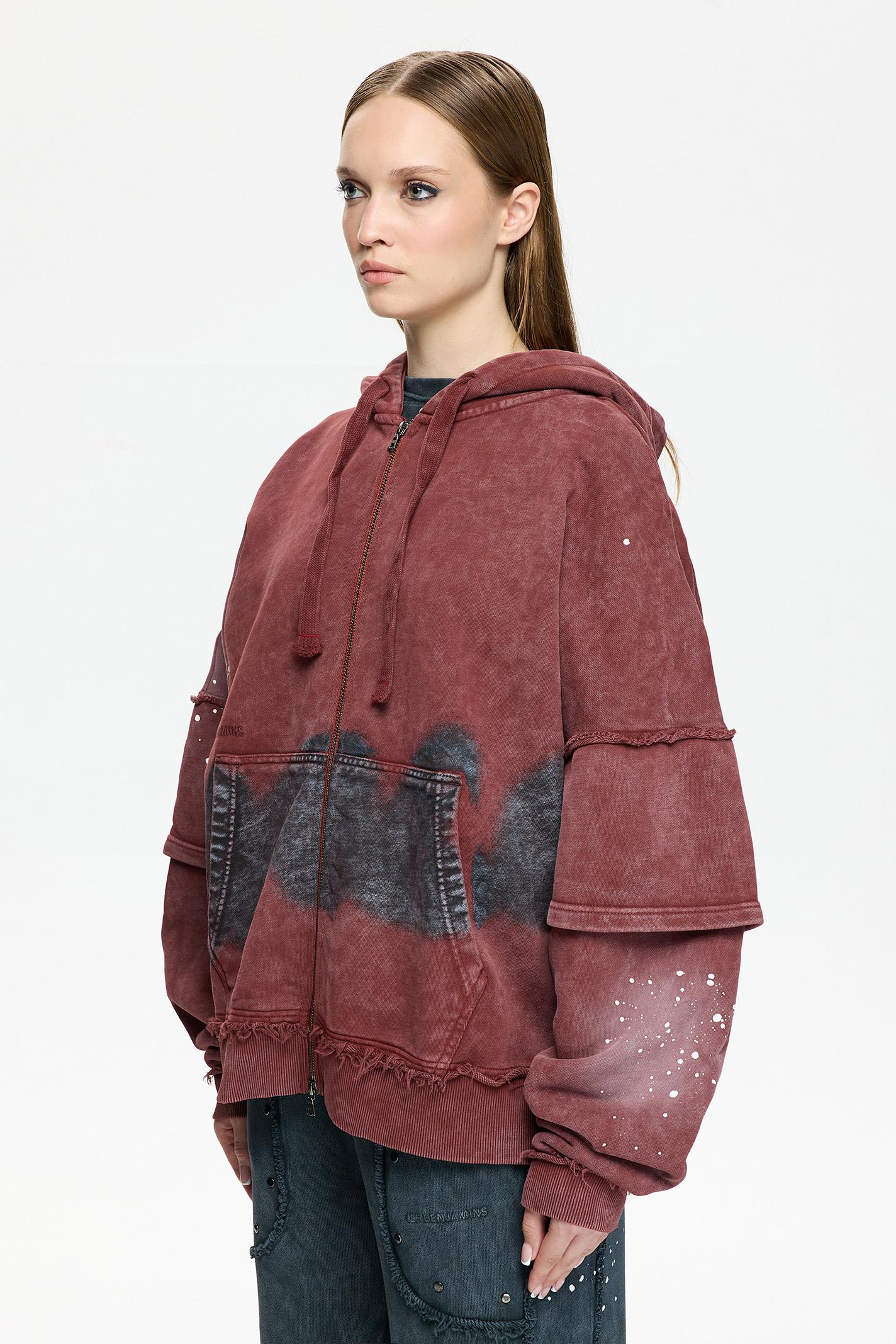 Regular Fit Bordo Renkli Unisex Fermuarlı Kapüşonlu Sweatshirt